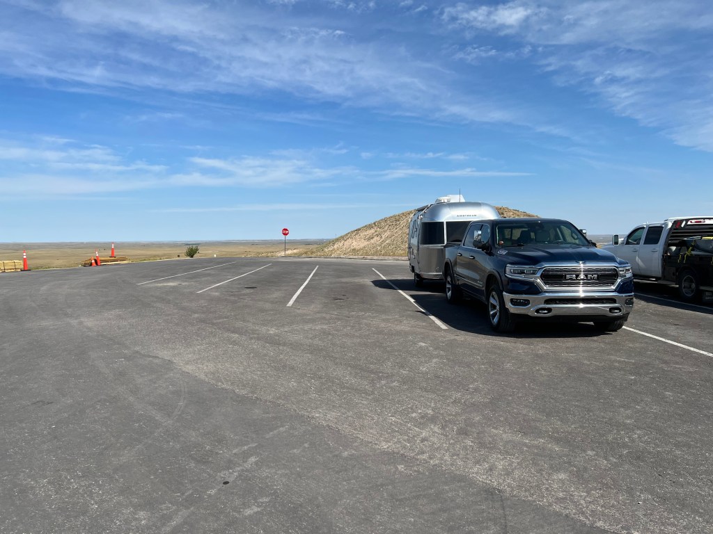 For those who are new to us, first of all welcome! We started doing some serious RVing when I decided to retire from working in August of 2022. Leading up to this time, we actually had bought a 2019 16RB Bambi Sport Airstream for our first major trip to Utah out to Las Vegas and then south through several National Parks (The southern portion did not happen — and I’ll get into why in a bit). We bought the Bambi, nicknamed Li’l Epsilon, in summer of 2021 a year out from this major trip, in order to break her in to our style of camping and to see what we liked and what we didn’t like. Our tow vehicle (TV) was a 2018 Honda Ridgeline. This truck was perfectly capable of towing that little airstream, but we learned it had very little margin and would sometimes overheat in hauling this little one. So, according to one dear friend, I bought a man’s truck as a solution to that — I purchased a 2022 Ram 1500 Limited Anniversary Edition. This truck was an EcoDiesel and I loved the thing inside and out. Too bad we fatally named it “The Blue Bomber” (of course, I’m an Air Force guy and this truck was painted Patriot Blue.)
